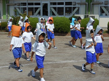 地震を想定しての避難訓練を行いました。みんなとても真剣に取り組み、約束を守って静かに避難することができました。