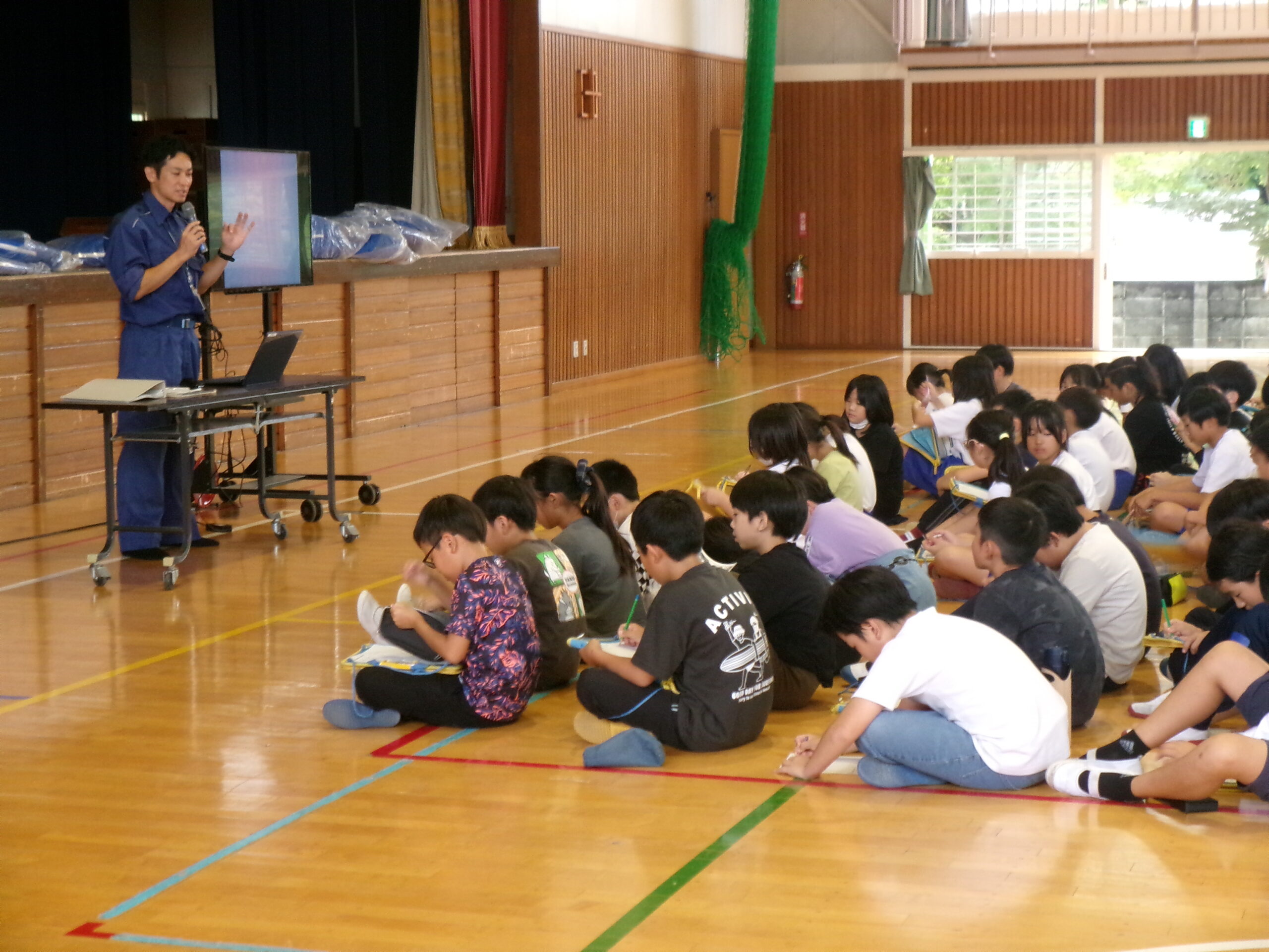 函南町役場の地域安全課の方々を講師にお招きし、総合的な学習「防災学習」を行いました。