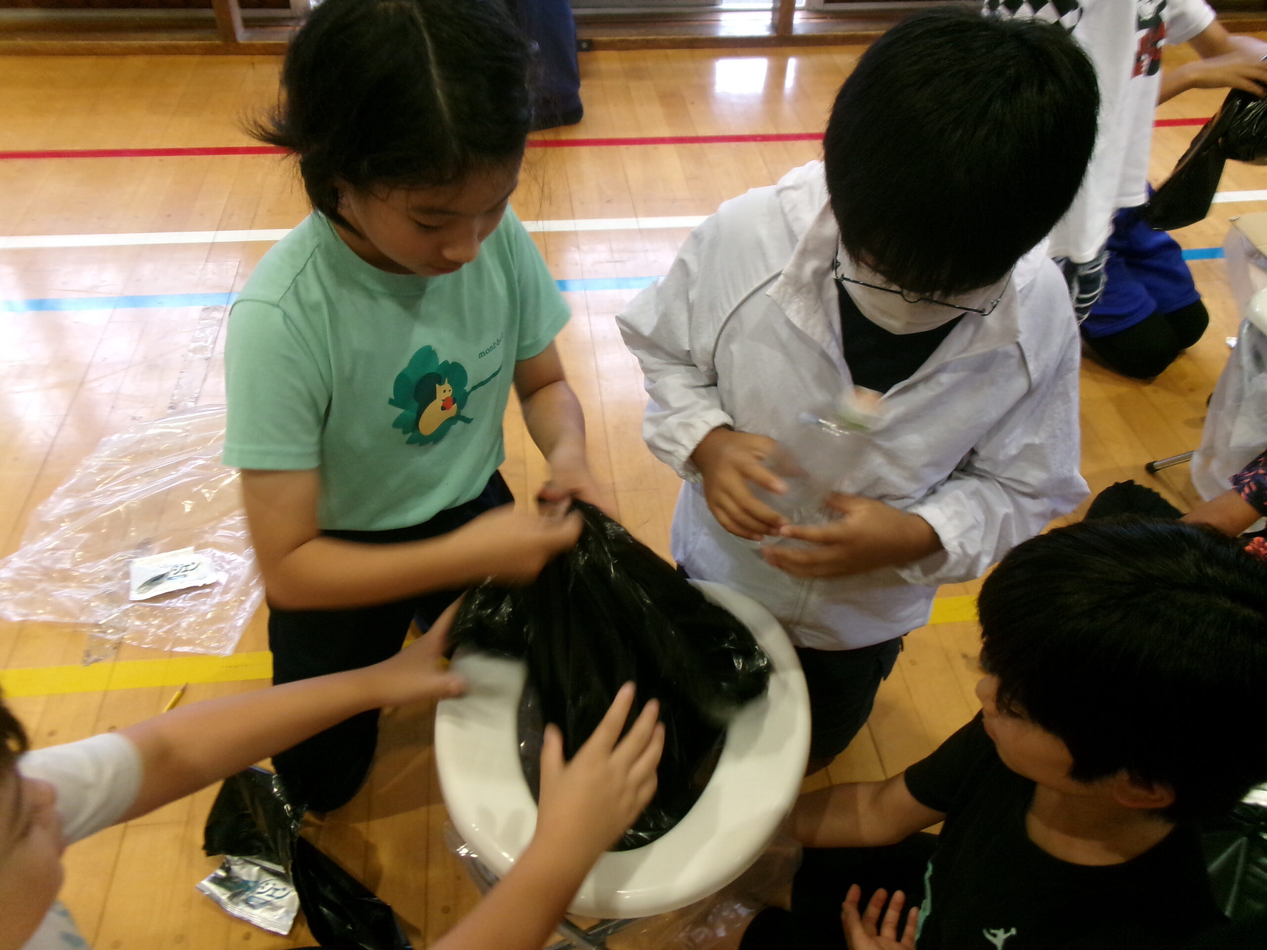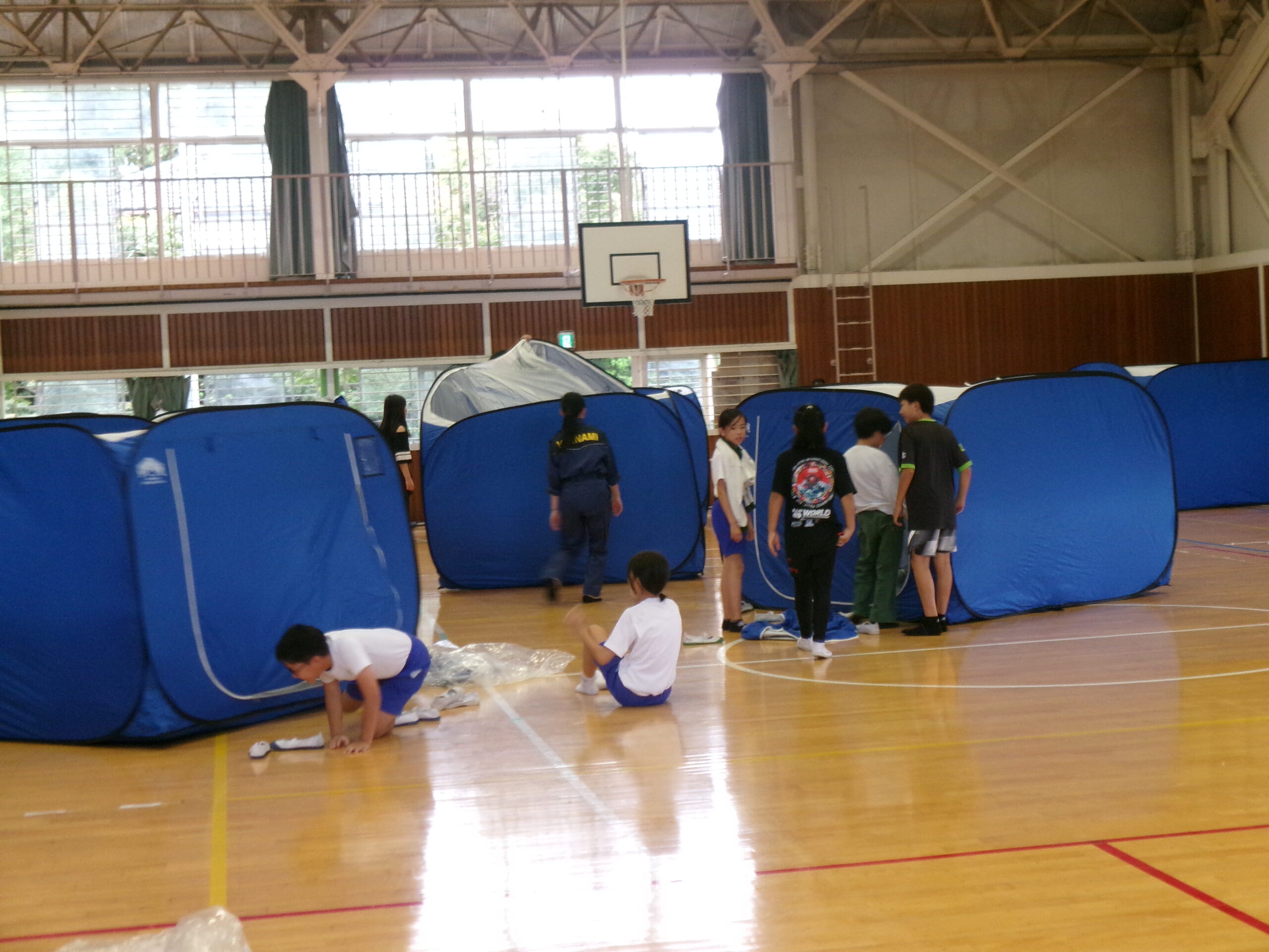 災害時の避難所の役割についてお話を聞いたり、簡易トイレやパーテーションの使い方を学んだりしました。実際に組み立てながら使い方を学んだことで理解が深まりました。