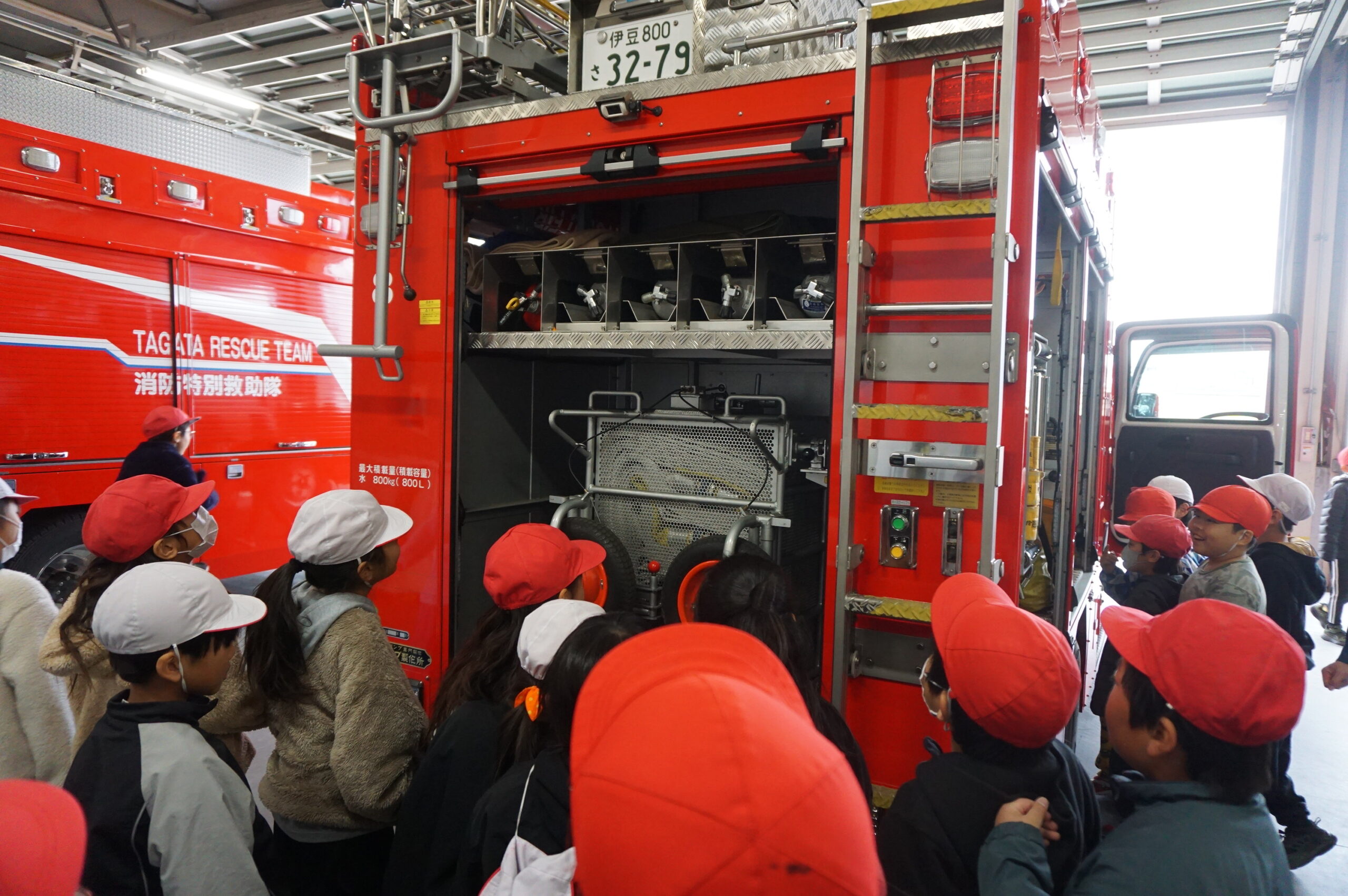 3年 消防署見学 投稿日時: 2026年1月29日 投稿者: kyoto 1/21(水)に社会科見学で田方北消防署に行きました。消防車や救急車を近くで見たり、すぐに出動するための工夫を教えてもらったりと、子供たちにとってたくさんの学びがある見学となりました。